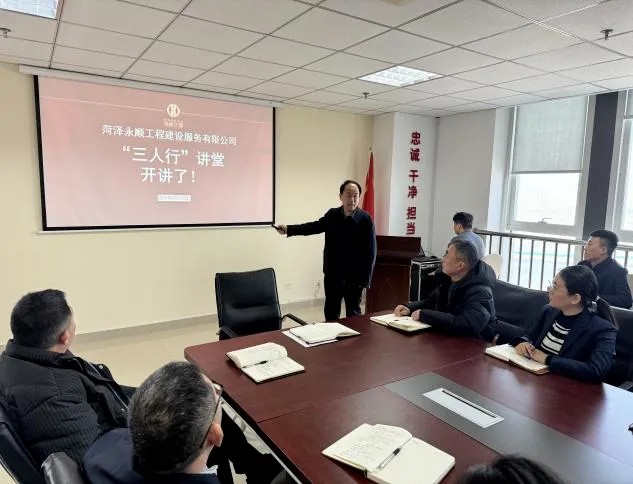 2月10日,春寒料峭。永顺工程公司在会议室举办三人行讲堂,董事长苑洪涛主持并首讲,公司全体员工参加。