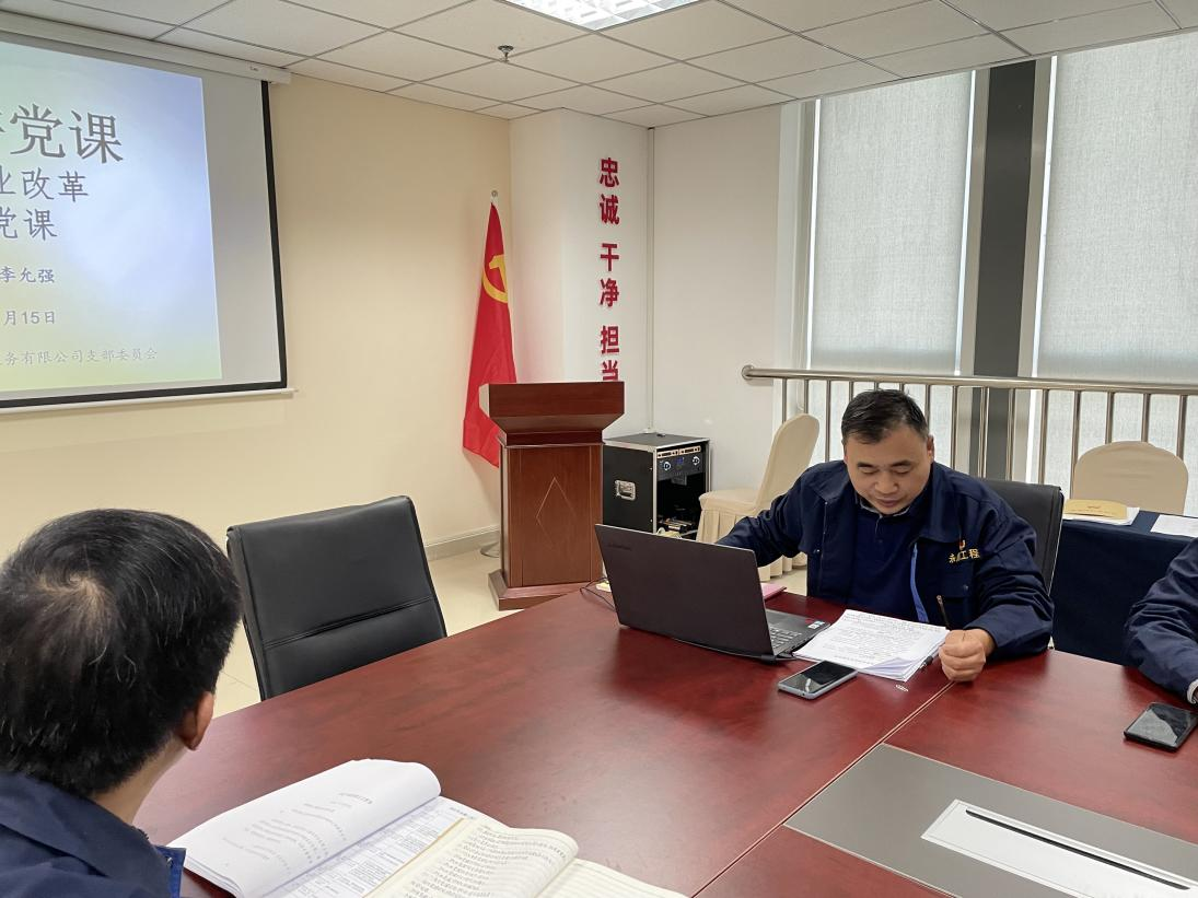 支部副书记李允强结合国有企业的发展和国有企业改革的方向讲国企改革党课,会上强调要贯彻落实习近平总书记对国企改革重要指示,不仅是党员干部的必修课,也是新时期履行推动国企高质量发展的强大动力。